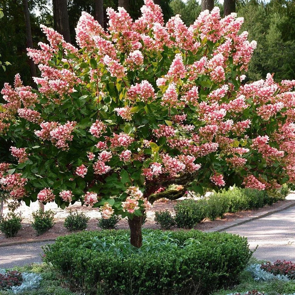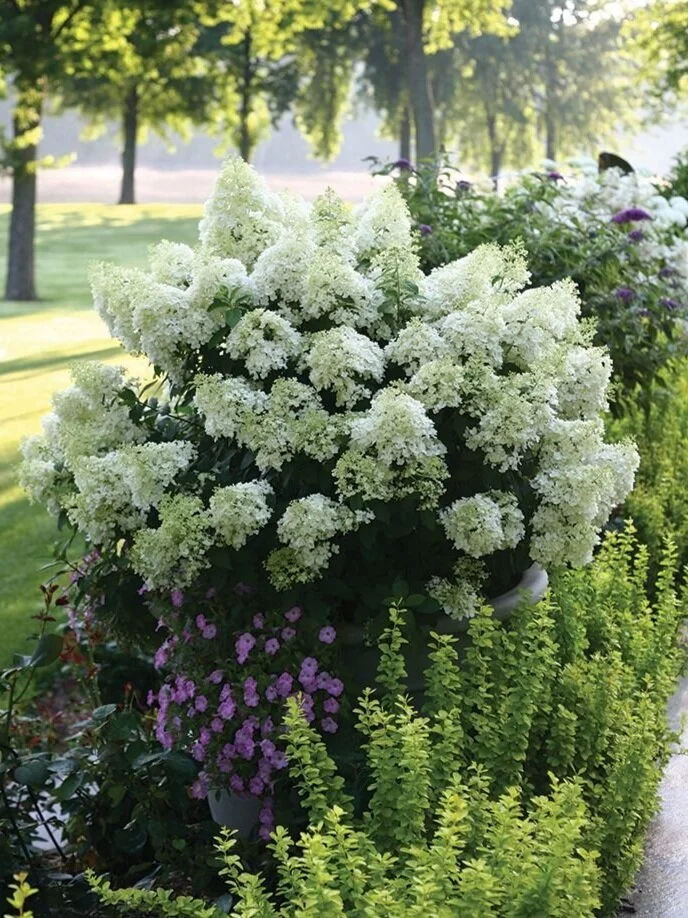 This is a wonderful hydrangea for our region. There are white and pink varieties. (Sorry, these don’t change color and blue hasn’t been developed as a variety yet.) Smooth hydrangeas are hardy to our area and flower reliably. They colonize your garden area overtime and look great in a large planting. These hydrangeas have mop heads -- sometimes the heads are so large they will flop over. Planting them together in larger plantings helps to hold them together. ‘Annabelle’ is one of the older, popular varieties. ‘Incrediball’ is a Proven Winner (PW) and is known for large blooms and stronger stems (less flopping). ‘Invincibelle Spirit’ is a variety that has a soft pink color (mauve). These hydrangeas can be cut down to one foot in the fall and will regrow and rebloom the following year.